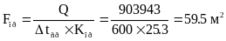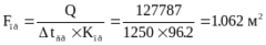 Теплообменник, поверхностью F = 1.5 м2 , подходит с запасом D= 46.28 %.
