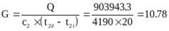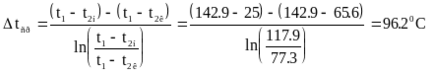 Q= 1.05´G2´c2´( t2к - t2н) = 1.05´1.1389´2632´(65.6-25) = 127787 Вт [3, c519]