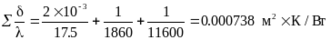 Сумма термических сопротивлений стенки труб из нержавеющей стали и загрязнения со стороны воды и пара равна: