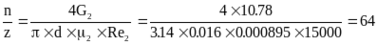 Задаваясь числом Re2= 15000, определим соотношение n /z для конденсатора из труб диаметром dн= 20´2 мм: