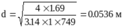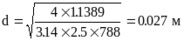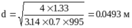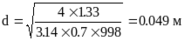 Внутренний диаметр трубопровода круглого сечения рассчитывают по формуле: