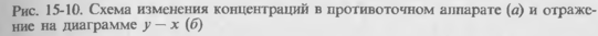Для упрощения выводов, полагаем, что аппарат работает по противоточной схеме при идеальном вытеснении, линия равновесия прямая (т.е y=mx), m>1 и перенос вещества – из фазы Фx в фазу Фy (рис)