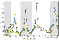 Рис. 2. Периодическая зависимость атомных объемов и геохимические классы химических элементов