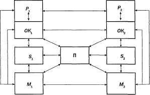 5, и 52 — стороны конфликта (субъекты конфликта); П — предмет конфликта; ОК1 и ОК2 — образы предмета конфликта (конфликтной ситуации); М1 и М2 — мотивы конфликта; Р1 и Р2 — позиции конфликтующих сторон.