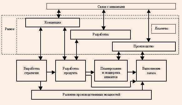 Очень важным представляется, что рынок включен в структуру компании. Самостоятельную структурную функцию выполняют и клиенты, которые, находясь вне рынка (это видно на схеме), могут строить свои отношения с Texas Instruments только на основе заключения контрактов.