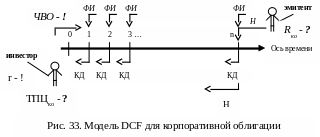 Рассмотрим модель DCF для корпоративной облигации. Причем – изобразим на одной схеме обе позиции – инвестора и эмитента (см. рис. 33).