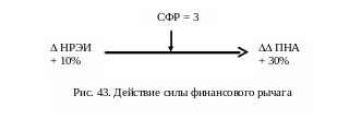 Финансовый рычаг работает так, что любые изменения НРЭИ (на рис. 43 показано символом «») порождают более сильные изменения ПНА (показано символом «»). И СФР – это безразмерный коэффициент усиления данного процесса (см. рис. 43).