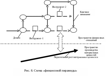 чевидно, что такая схема может расти. И проблема состоит только в одном: будет ли осуществлено конечное «замыкание» схемы (погашение всех выпущенных финансовых инструментов)? Будут ли выпущенные финансовые инструменты обеспечены подлинными деньгами при их предъявлении в конце срока окончания операции?