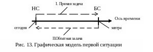 Таким образом, мы рассмотрели первую, простейшую теоретическую ситуацию, в которой два момента времени («сегодня» и «завтра») и две единичные стоимости (НС и БС), которые должны быть эквивалентны в указанных двух моментах времени. Графически это можно представить так (рис. 13).