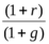 Эквивалентно преобразуем левую часть уравнения (42) и умножим обе части уравнения на (1 + g), в результате получим: