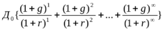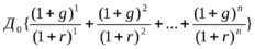Д1 = Д0 ∙ (1+g)1; Д2 = Д0 ∙ (1+g)2 и т.д. (по определению постоянного темпа роста дивидендов Дt).