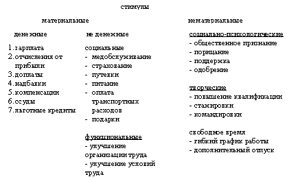 Стимулы выполняют роль раздражителей, воздействующих на работника извне, с целью побуждения его к деятельности.