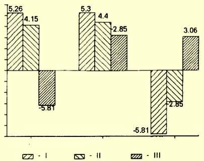 Не загромождая текст таблицами с результатами данного исследования, приведем лишь диаграммы, позволяющие сравнить ценностные ориентации испытуемых всех трех группа. При этом I группу составляют благополучные учащиеся, II группу — педагогически запущенные, III группу — социально запущенные подростки.