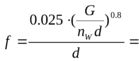 Функция параметров потока НП в ЗТ для турбулентного режима течения, (кг/с)^0,8/м^1,