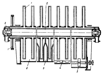 Дисковые вакуум-фильтры в отличие от барабанных имеют фильтрующие элементы в виде дисков, собранных из нескольких отдельных сегментов , что позволяет при тех же внешних габаритах аппарата увеличить поверхность фильтрации до 80 м2.