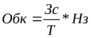 Для определения необходимого оборотного напитала (ОбК) по каждой позиции сумма затрат по смете (3с) делится на число дней в периоде (T) и умножается на установленную норму запаса в днях (Нз):