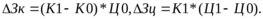Размер производственных запасов в стоимостном выражении может измениться как за счет количественного, так и стоимостного (инфляционного) факторов. Расчет влияния количественного (K) и стоимостного (Ц) факторов на изменение суммы запасов (3) по каждому виду осуществляется способом абсолютных разниц: