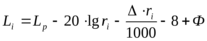 Кратчайшее расстояние от центра источника шума до расчетной точки 60 м.