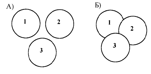 рис.2 А) Неэффективное маркетинговое взаимодействие. Б) Эффективное маркетинговое взаимодействие. 1-призводитель, 2- потребитель, 3-посредник