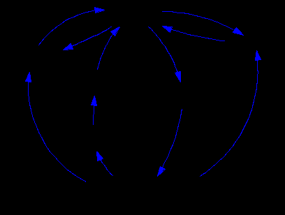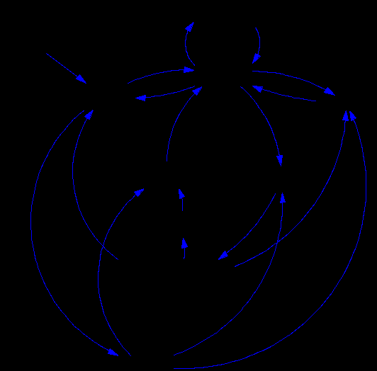 Для того чтобы отразить моё видение механизма того, как росла популярность ЖЖ, я построю причинно-следственную диаграмму. Рост каждой переменной в данной диаграмме приводит к росту переменной, с которой она связана стрелкой.