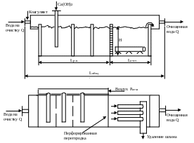 Равномерное распределение сточной воды достигается при помощи поперечного лотка. Горизонтальные отстойники рекомендуется применять при расходах сточных вод свыше 15000 м3/сут. Эффективность отстаивания достигает 60%.