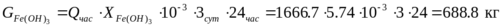 Количество Fe(OH)3 оседающего за 3 суток.