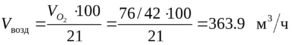 Определяем объем воздуха, необходимого для насыщения воды рецикла газом