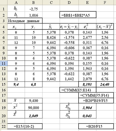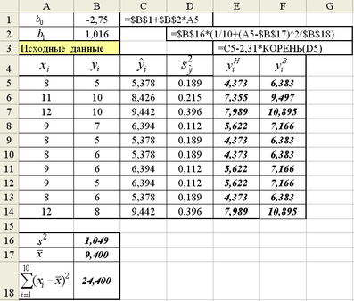 Решение. Фрагмент документа Excel, вычисляющего требуемые величины приведен на рис. 1.4. О