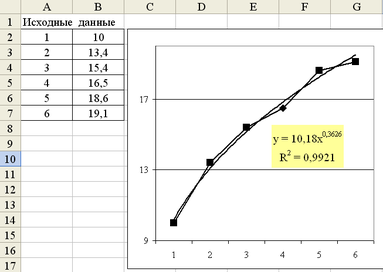 . Из таб. 2.2 видно, что таким уравнением является степенная функции (в таблице строка с этой функцией выделена серым цветом)