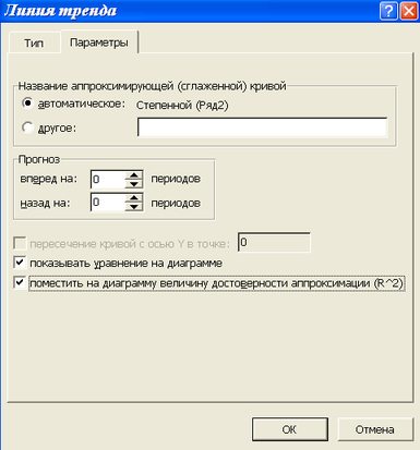 «Поместить на диаграмму величину достоверности аппроксимации (R^2)» - на диаграмме будет показана значение коэффициент детерминации