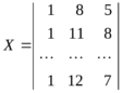 , первый столбец которой составлен из 1, а другие два столбца составлены из значений