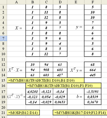 Рис. 3.1. Вычисление коэффициентов множественной регрессии