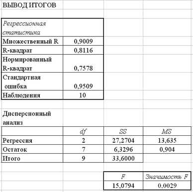 Вычисление коэффициентов линейной множественной регрессии и проверка значимости в режиме Регрессия