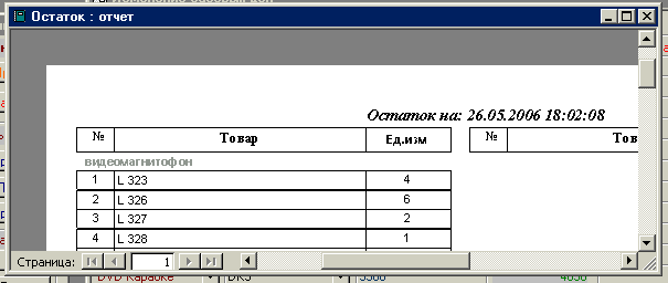 Для анализа остатка товара необходимо щелкнуть по кнопке «ОСТАТОК», высветится форма в виде страниц текста (рисунок 2.9).