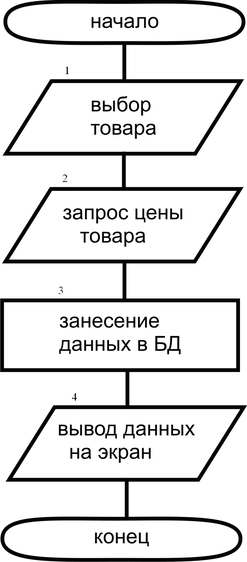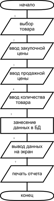 В модуле «Продажа товара» производятся операции по выбору товара, ввода цены товара и занесению данных в базы данных, связанные с программой, осуществляется вывод на экран данных и отчётов.