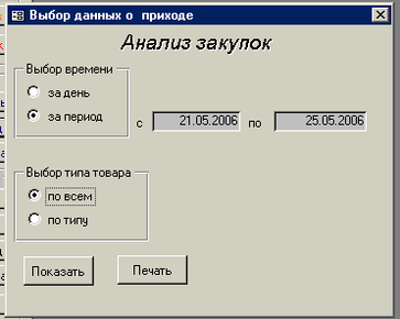 Группа кнопок «Вывод» служит для анализа прибыли, и продаж.