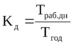 Коэффициент календарных дней вычисляется по формуле (4.3):