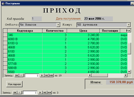 Рисунок В3 - Окно типа товара Рисунок В4 - Окно прихода товара