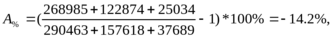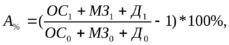 Темп прироста реальных активов А% исчисляется по формуле [5, 424]: