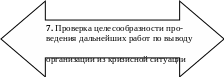 Блок 7. Теперь проверяется целесообразность проведения дальнейших работ по выводу организации из кризисной ситуации, которая состоит в опреде-лении того, на какой стадии выполнения находится антикризисная программа.