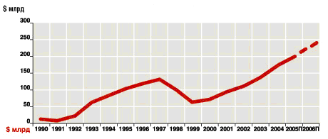 За 5 лет траты среднего жителя России на продукты питания выросли в 2–2,5 раза, достигнув $100–140 на человека в месяц. В результате в 2005 году российский продовольственный рынок вышел на одно из первых мест в Европе, достигнув $240–250 миллиардов за год (рис. 1).
