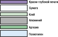 Рис. 2.3. Возможные комбинации слоев в многослойном материале на основе фольги и области их применения