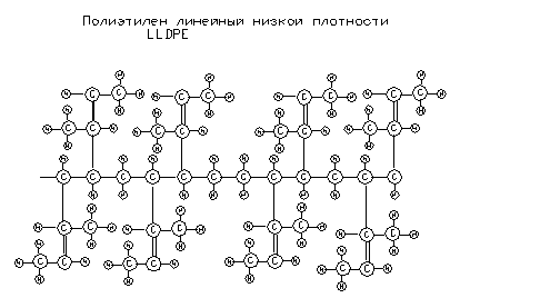 Рис. 2.9. Строение молекулы полиэтилена линейного низкой плотности