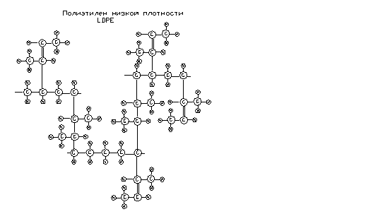 Если первые три разновидности полиэтилена имеют линейную структуру главной в цепи с большим или меньшим количеством ответвлений кополимера, то LDPE свойственны длинные ветвящиеся цепи, соединяющиеся сами с собой.