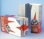 Фольга для упаковки масла, маргарина, мороженого, творога и творожных сырков. В этом случае используется алюминиевая фольга, кашированная воском на пергаментную, подпергаментную или сульфитную бумагу. Испытания фольги толщиной 9 мкм, тисненой снаружи и кашированной воском на пергаментную бумагу 40 г/м2, дали значение влагопроницаемости всего 0,005 г/м2xd, где d — толщина материала. Это очень высокий результат, который достигается благодаря тому, что воск для каширования и защитный лак сводят к минимуму количество имеющихся пор.