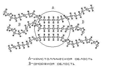 В полиэтилене имеются зоны, где молекулы молекулярные цепочки относительно ровные и расположены симметрично друг другу. Эти зоны отличаются большей плотностью и называются "кристаллитами", то есть " кристаллоподобными". В остальном пространстве вещества макромолекулы беспорядочно переплетены, образуя рыхлую аморфную структуру. Эти зоны обладают меньшей плотностью. С повышением температуры кристаллиты распадаются, переходя в аморфное состояние. При достижении температуры 200oС полиэтилен переходит в текуче-пластичное состояние, при котором он может подвергаться формовке