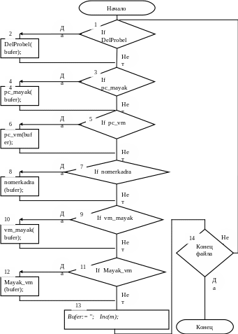 9. Если pos('X', kadr) = 0, то переход к п. 10.
