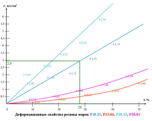 По диаграмме σ(ε) определяем σсж для выбранной марки резины: