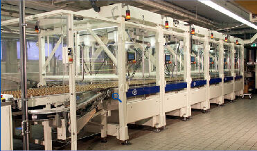 Контейнеры поступают на роботизированную линию упаковки с раскладчика блистеров blister destacker. Пачки блистеров опознаются высокочувствительными оптическими датчиками роботизированной линии, которая сообщает о позиции и координате упаковки контроллеру перемещений робота. Они способны также различать тип шоколадного продукта, его положение и ориентацию. Эта информация также передается на контроллер перемещений, который координирует работу каждого робота, что бы точно подобрать продукт (путем выбора правильной вакуумной головки, соответствующей конкретному продукту) и правильно разместить его в блистере.
