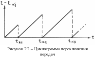 Для того чтобы рост момента M1 осуществлялся после каждого переключения передачи, необходимо, чтобы в момент включения сцепления отсчет времени начинался с нуля. Поэтому в качестве аргумента применяется разность (t–tkj), где tkj – значение времени в момент включения сцепления на j-той передаче. Тогда аргумент (t–tkj) будет изменяется в соответствии с циклограммой (рисунок 2.2).